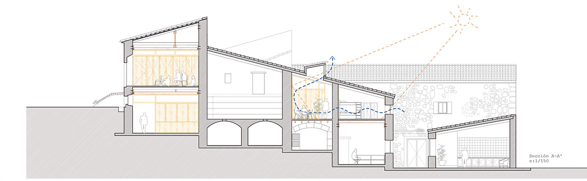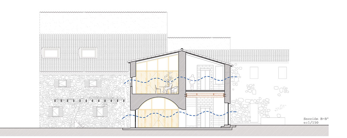 The configuration of the house at the time prior to the project is made up of a heterogeneity of systems and identity elements belonging to successive eras that, as if they were strata, have given rise to a mestizo architecture that is valuable in terms of its ability to crystallize in a single example the essence and authenticity of the evolution of architecture. The house rehabilitation process is approached with a different criterion than usual.